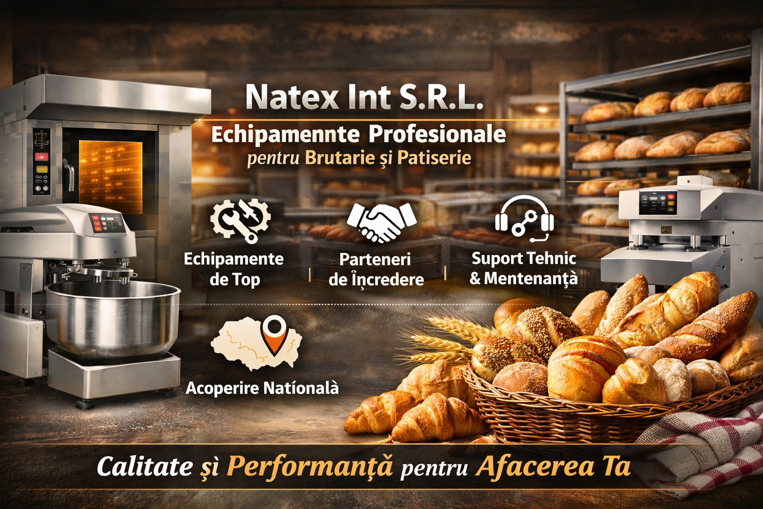 Bine ați venit la Natex Int S.R.L., partenerul dumneavoastră de încredere în furnizarea de echipamente profesionale pentru brutării, panificație și patiserie. Cu o experiență solidă în domeniu și o orientare constantă către calitate, ne dedicăm susținerii afacerilor care își doresc performanță și rezultate durabile.